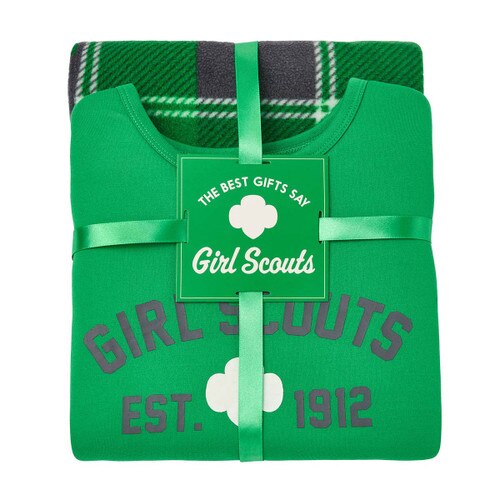We've got your holiday shopping figured out with this perfect pajama set. Includes short sleeve t-shirt and full length pants. Best of all, the set is packaged perfectly to gift, with “The Best Gifts Say Girl Scouts” branding and ribbon detail.