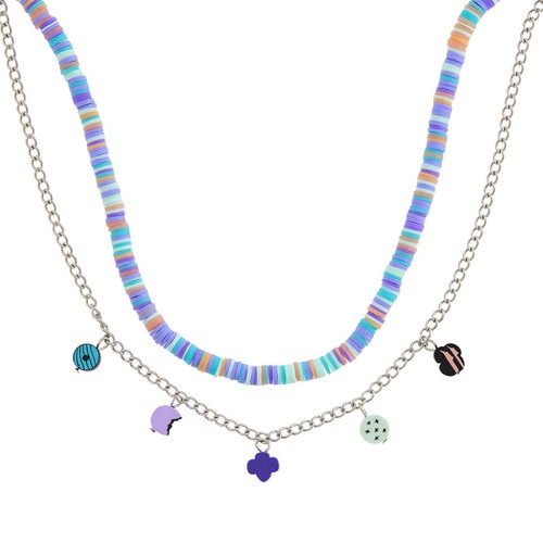 This 3-pack earring set is all about playful variety and Girl Scout flair. Featuring one pair of cookie clay charm earrings with fishhook backs and two pairs of colorful cookie clay charm studs, each style is designed to mix, match, and brighten up any look. The colors coordinate perfectly with the rest of the Beaded Cookie collection for a look that’s cute, cheery, and full of personality.