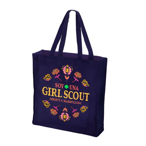 Celebra el poder de la individualidad, la unidad y el orgullo de ser quién eres. ¡Muestra tu espíritu Girl Scout con la bolsa de tela de Soy Girl Scout! Hecha de lienzo durable color azul marino esta increíble bolsa lleva un mensaje inspirador. “¡Soy Una Girl Scout Mighty & Maravillosa!” con colores inspirados en el Día de los Muertos. Perfecta para el uso diario, esta espaciosa bolsa de tela está preparada para guardar todo lo que necesites a donde quiera que vayas.