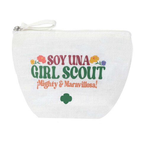 Celebra el poder de la individualidad, la unidad y el orgullo de ser quien eres. Esta elegante bolsita blanca luce el inspirador mensaje “¡Soy Una Girl Scout Mighty & Maravillosa!” para recordarte que eres fuerte, segura de ti misma y capaz de lo que sea. Además de inspiradora es muy práctica, perfecta para mantener organizadas tus cositas esenciales. 100% cáñamo de fuentes sostenibles. 8" W x 5 ½" H x 3 ¼" D (20.3 cm de ancho x 13.9 cm de altura x 8.3 cm de profundidad). Hecho en Estados Unidos de América.