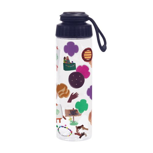 Hydration gets a personal touch with this fun and functional Cookie UV Decal Water Bottle. Made from durable, BPA-free Tritan™ plastic, the clear bottle features a black lid and a Dacron carry strap for easy, on-the-go use. The bottle includes 14 unique UV gel decals—featuring cookies, trefoil, and all things Girl Scouts—so it’s easy to mix, match, and make it your own. A creative way to sip in style and show off Girl Scout pride wherever the day leads. Imported. 25 oz. sports bottle made of durable Tritan™ plastic. BPA Free.