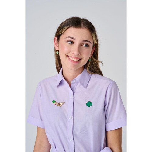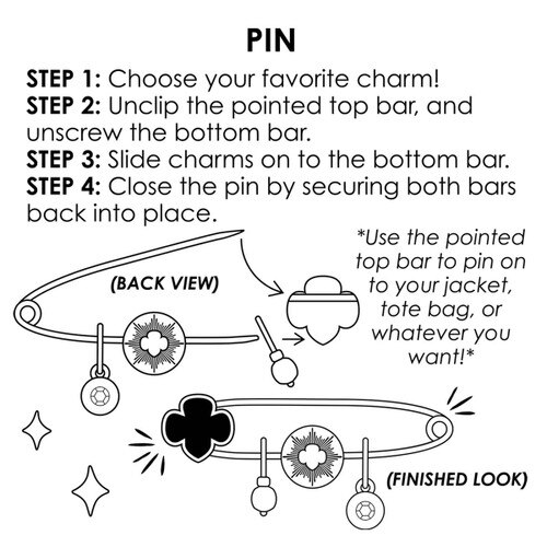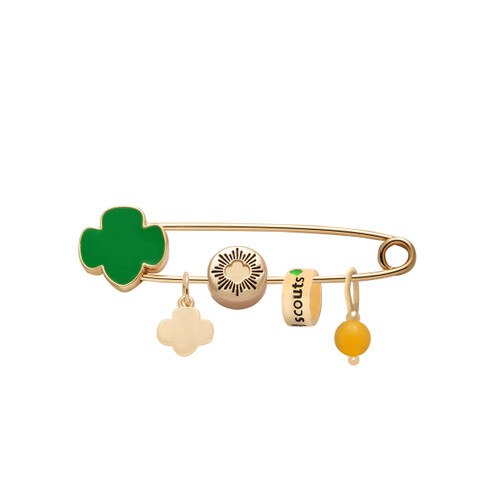Attach this elegant goldtone pin to your favorite jacket, scarf or backpack and create your own look! It’s easy when you customize it with any charms in the collection. Mix and match with charms that are meaningful to you for a truly personalized look or as a gift for a special Girl Scout. Easily attach charms to the bottom bar and pin the top bar into tops, jackets, bags etc. 5.3 x 5 mm trefoil stud, 12 mm hoop and 10 x 9.5 mm trefoil charm. Brass and epoxy. Imported.