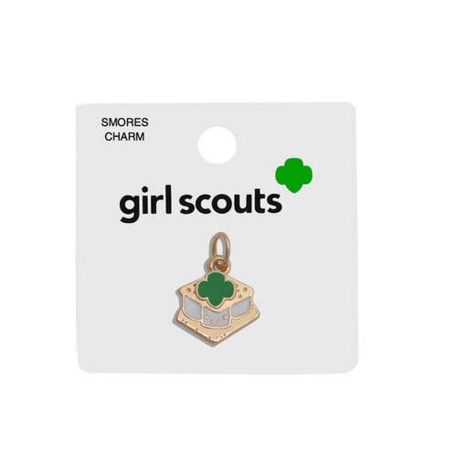 Celebrate sweet memories with this adorable charm. Featuring a s’mores with smiley face and solid trefoil charms on the same jump ring. Pair this charm with the Trefoil Necklace, Pin, or Earrings.Mix and match with additional charms that are meaningful to you for a truly personalized look or as a gift to a special Girl Scout. 10.5 mm X 12 mm X 2mm. Zinc, steel, and brass. Imported. Charm shown larger than actual size.