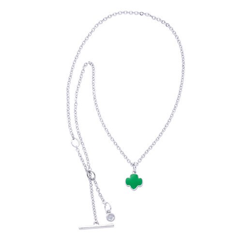 Create a necklace that tells your story! With a classic cable chain this necklace was designed to wear alone or with coordinating charms. Mix and match with charms that are meaningful to you for a truly personalized look or as a gift for a special Girl Scout. Silvertone metal with green, trefoil charm. Lobster claw clasp. 16” chain + 2” extender. Imported.