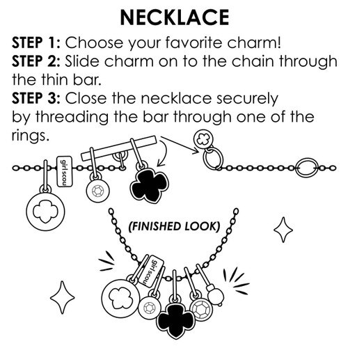 Show your Girl Scout spirit in your own charming way! The Girl Scout Charming Jewelry Collection was designed for you to personalize and design your own one-of-a-kind charm necklace, pin, or earrings. Easily add, change, or rearrange your charms and create a look that’s uniquely yours.