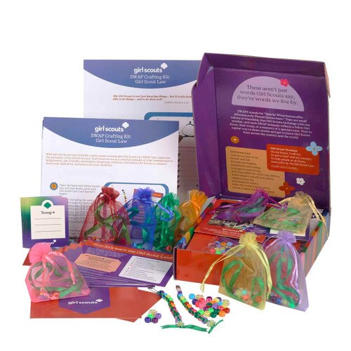 effortlessly with our all-in-one Promise & Law Kit. Specially curated for troop leaders, this kit streamlines the process of teaching these fundamental principles, saving you time and money. Everything you need for 10 SWAP Law Kits is included! Engage your troop in a meaningful crafting experience while instilling the core values of Girl Scouts. Learning the Promise and law has never been easier or more convenient. Ages 5+. Imported.