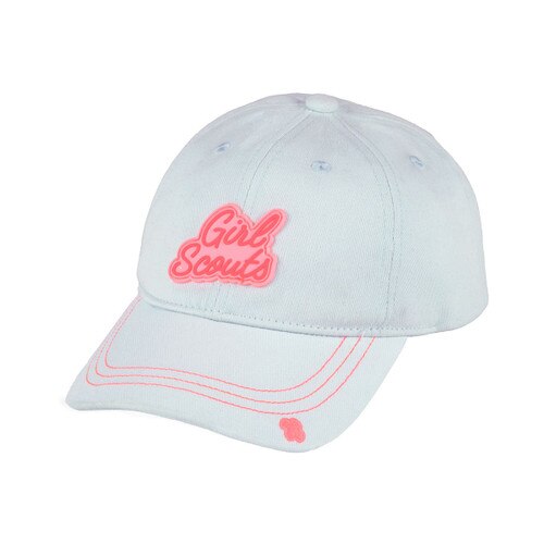 Top off your look with the perfect blend of style and Girl Scout spirit. In light blue with the script “Girl Scouts” PVC patch, this cap is an ideal accessory to complete your look. One size fits most. Pair it with the Girl’s Glowing Script T-Shirt . Cotton (95%) and PVC (5%). Imported.