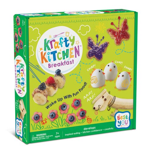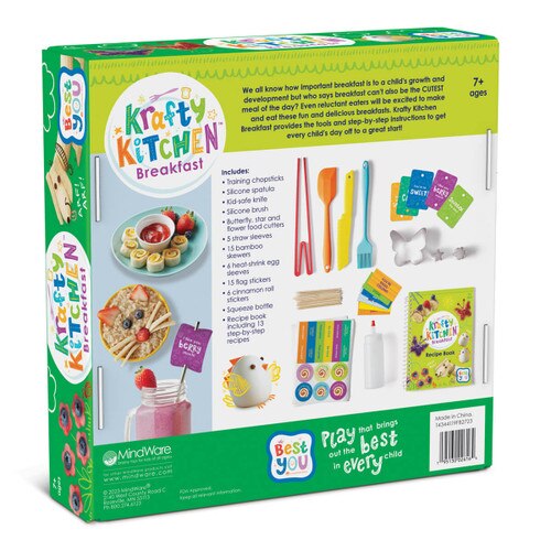 Featuring 13 mouthwatering recipes brimming with tasty goodness and Instagram-worthy aesthetics, Krafty Kitchen Breakfast Kit is your ticket to transforming ordinary morning dishes into adorable culinary creations. Packed with time-saving tips, easy-to-follow recipes, and a variety of kid-friendly kitchen tools—including kids’ knives for real cooking—this cooking set for kids empowers budding chefs to embrace their inner foodie and indulge in trendy, playful breakfast delights. By encouraging kids to have fun "playing" with their food while crafting healthy meals, kids’ cooking sets not only expand their palate but also foster lifelong healthy eating habits. Say goodbye to boring breakfasts and hello to adorable and delicious breakfast dishes that will make your taste buds dance with joy! Inspires creativity and food exploration while building lifelong healthy eating habits. Ages 7+. Imported.