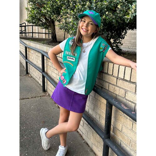 Fits as expected, ordered XL since daughter was in size L for brownie vest. And it is appropriately sized larger. Can fit over sweatshirts